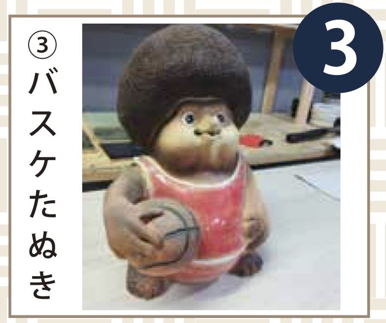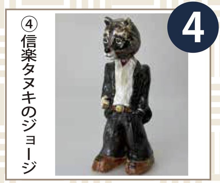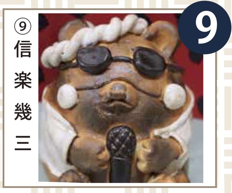 演歌界の大御所、吉幾三さんをイメージしたたぬき。吉さんは現在、甲賀市観光まちづくり協会の観光PR大使として甲賀市を盛り上げています。これからたぬき名はご本人様の名前と「信楽に行こう」との思いを込めて「信楽幾三(しがらきいくぞう)」としました。