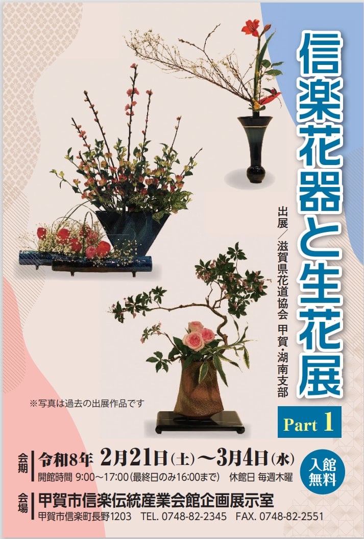 甲賀市信楽伝統産業会館より、企画展示「信楽花器と生花展 Part 1」のご案内です。