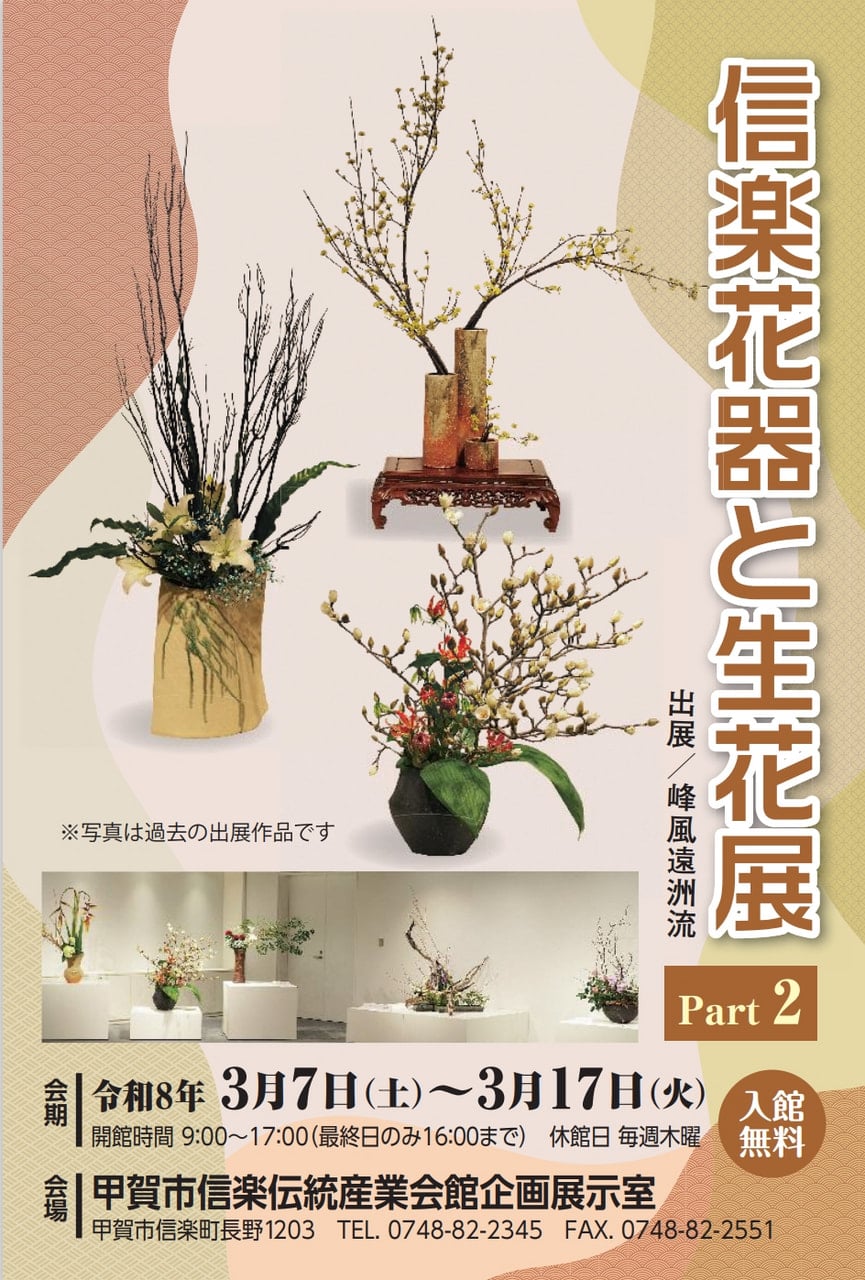 甲賀市信楽伝統産業会館より、企画展示「信楽花器と生花展 Part 2」のご案内です。