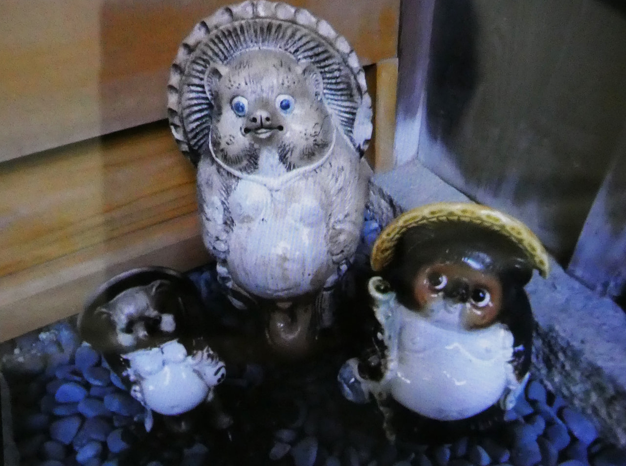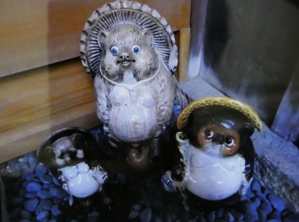 京都のたぬきさんの父&母と7体のたぬきさんたち