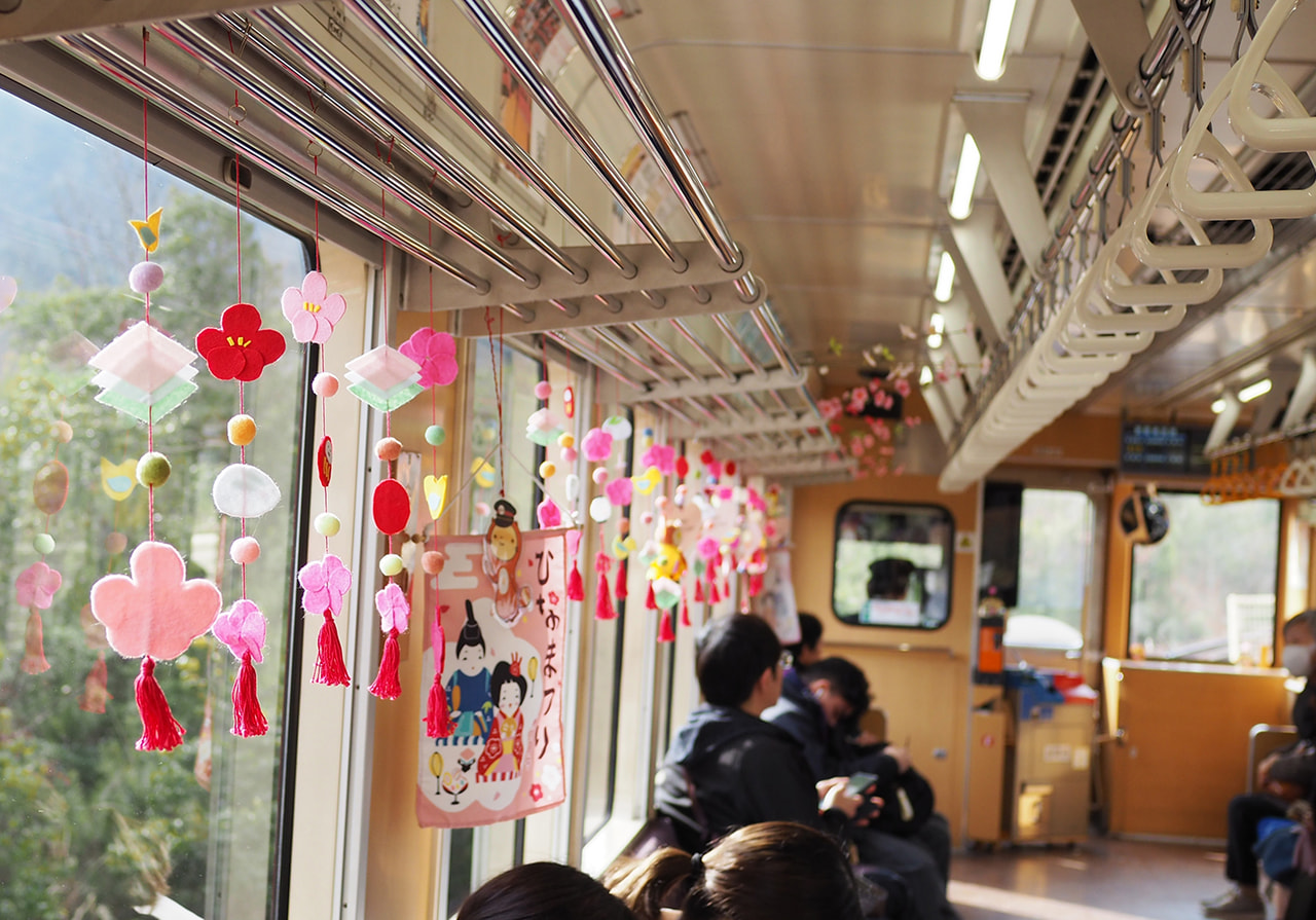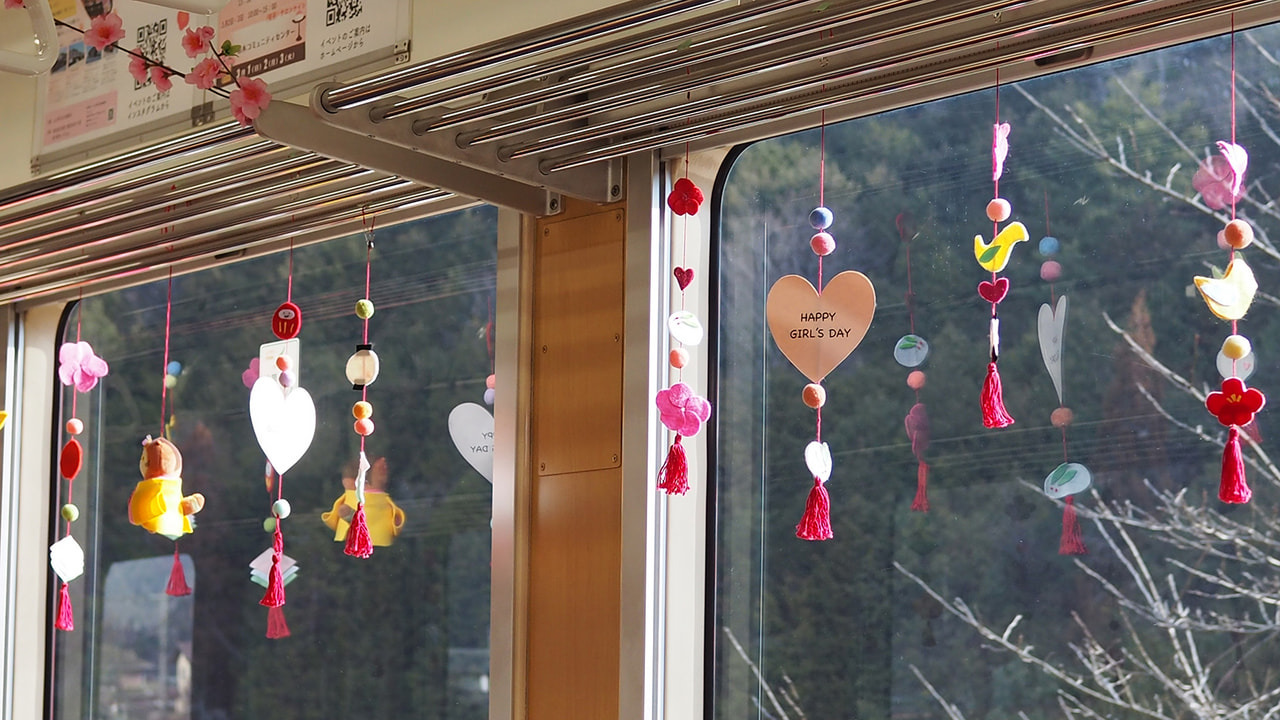 信楽高原鐵道の列車内に、手作りの「吊るし雛」を飾り運行します。