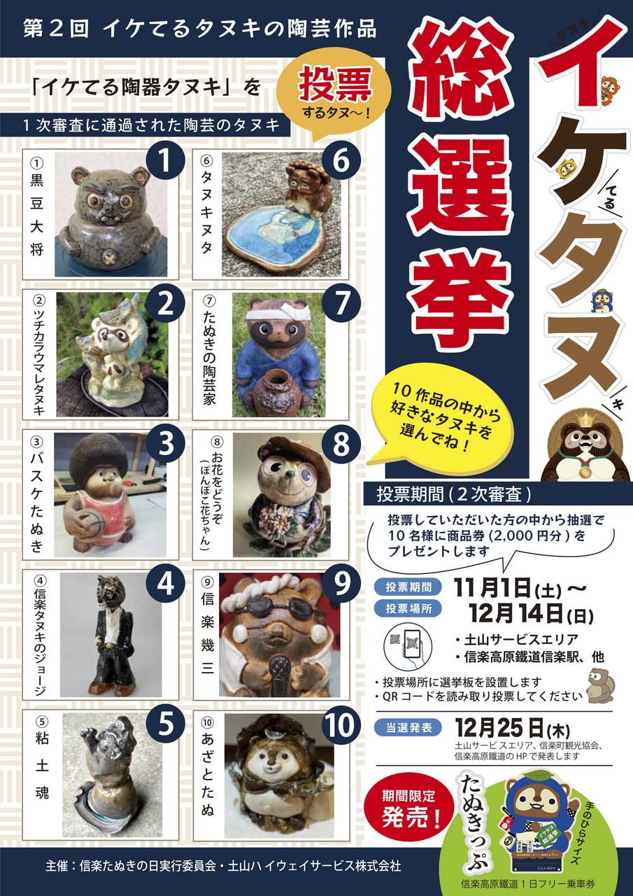 今年もイケタヌ総選挙を開催!応募作品の中から1次選考を勝ち抜いたタヌキたちの「イケタヌ総選挙」を行います。栄冠は果たしてどのタヌキの手に!?